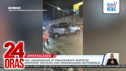 Van, hinarangan at pinagbabato matapos umanong takasan ang nabanggang motorsiklo | 24 Oras