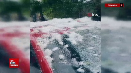 İstanbul'da çatıdan düşen kar kütlesi park halindeki otomobile zarar verdi