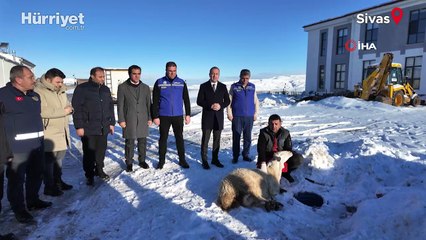 Sivas'ta son günlerde yoğun şekilde yağan kar nedeniyle Sivas Belediyesi şükür koyunu kesti...