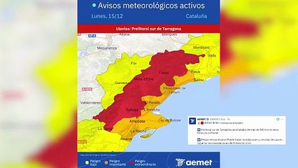 Aemet activa el aviso rojo en Tarragona por lluvias que podrían alcanzar 180 l/m2 en 12 horas