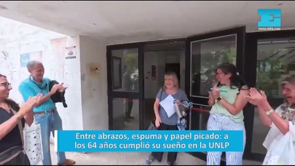 Entre abrazos, espuma y papel picado a los 64 años cumplió su sueño en la UNLP