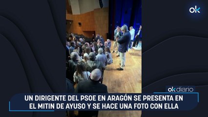 Un dirigente del PSOE en Aragón se presenta en el mitin de Ayuso y se hace una foto con ella