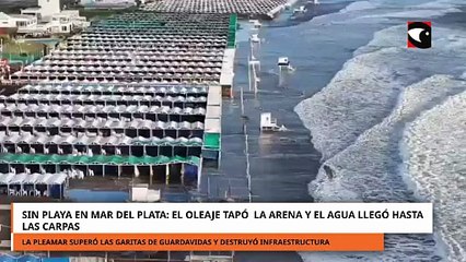 Sin playa en Mar del Plata por una fuerte crecida: el agua cubrió la arena y llegó hasta las carpas