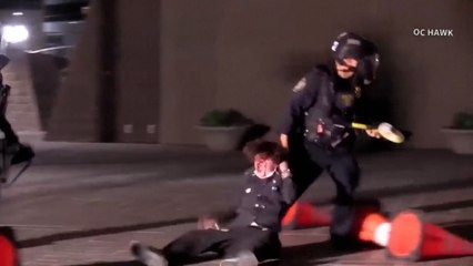 Momento en el que un agente dispara a la cara y a corta distancia a un manifestante en California