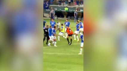Dünya bu kavgayı konuşuyor: Kale önünde başladı bir anda tüm saha birbirine girdi